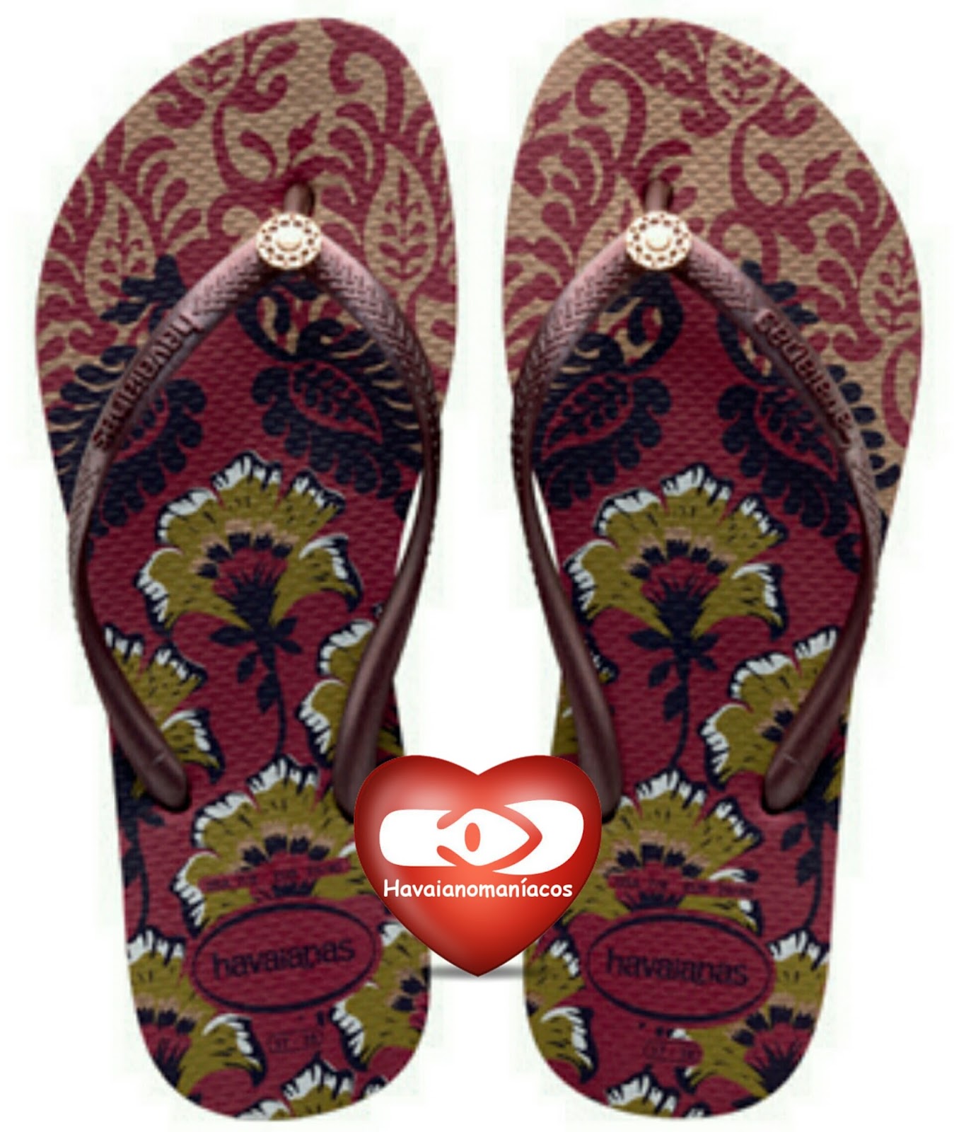Além do broche, o modelo Havaianas Slim Royal apresenta estampas com temas florais dando um toque ainda mais feminino nestas sandálias havaianas ou Chinelos Havaianas.